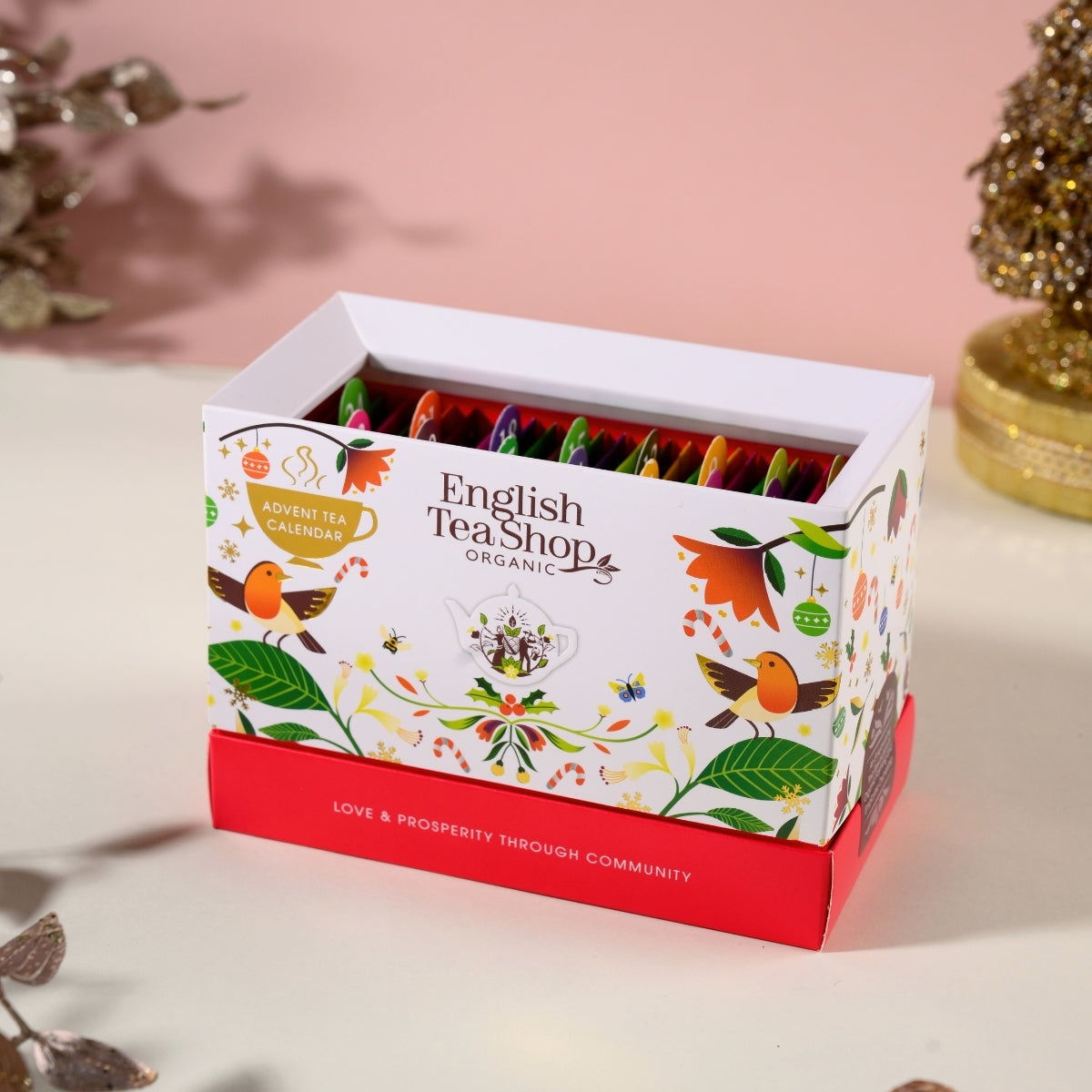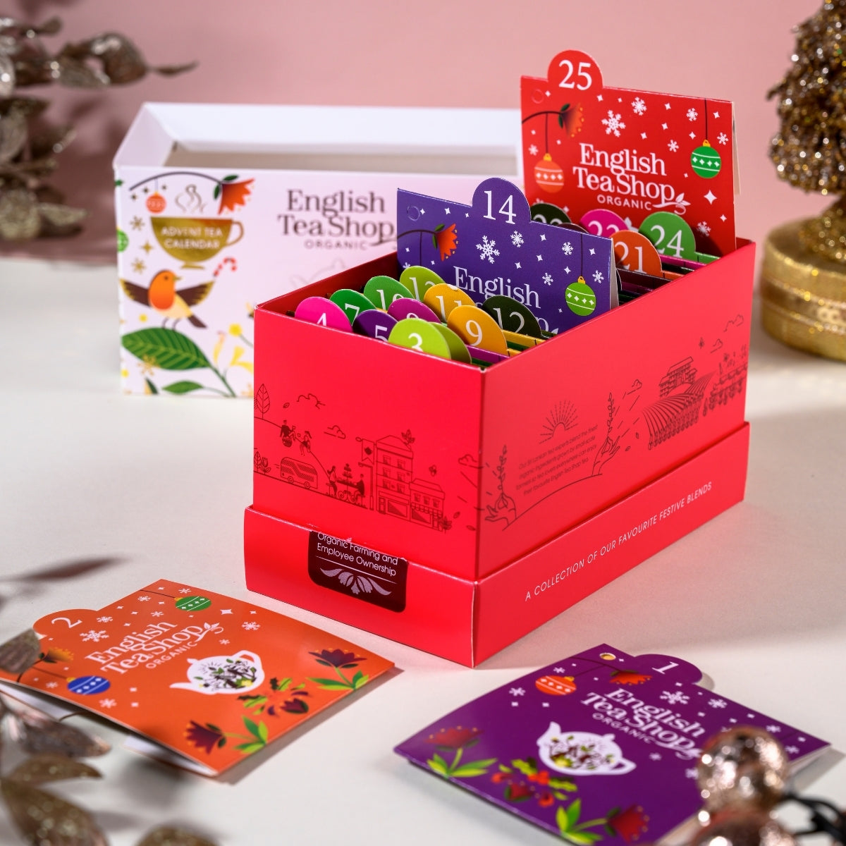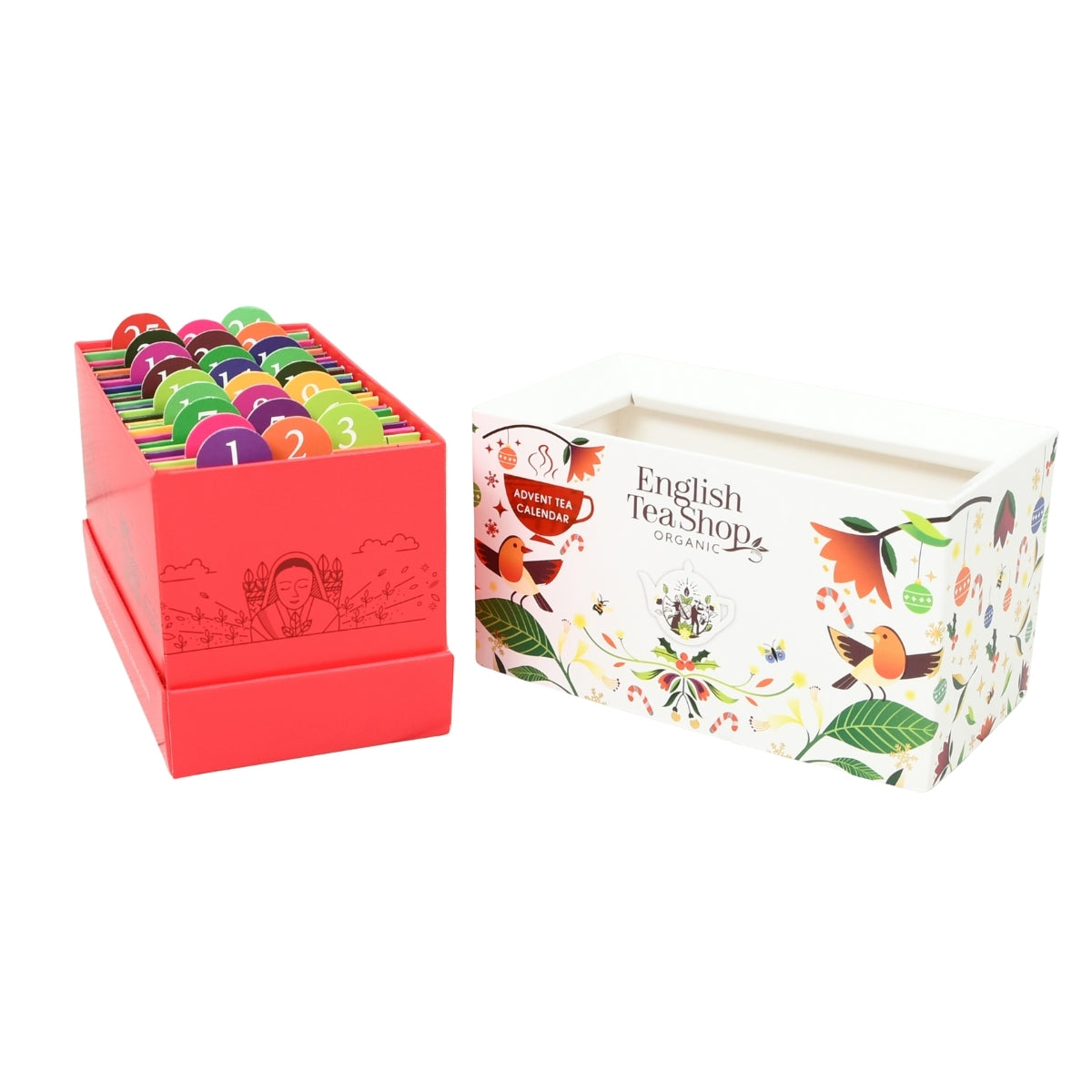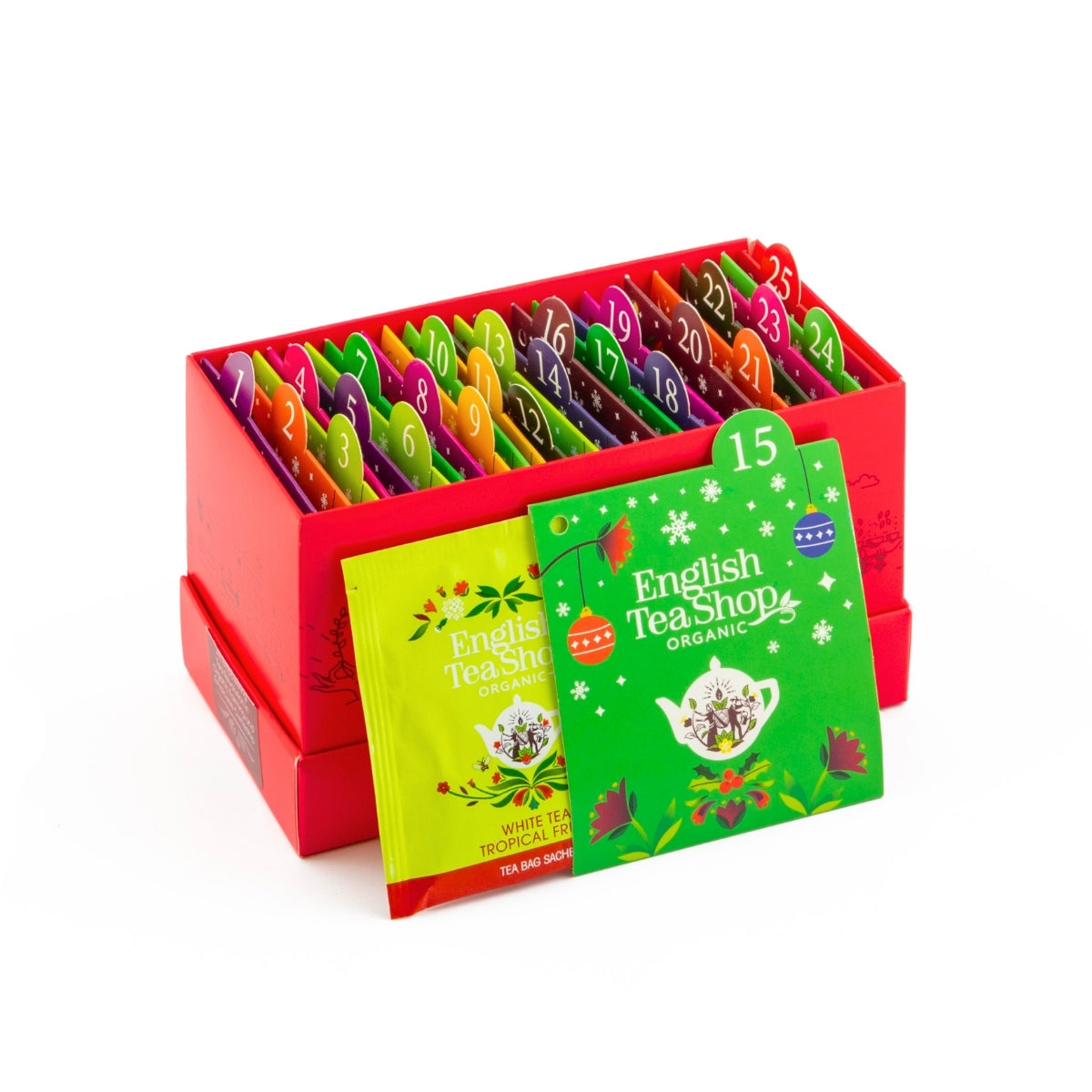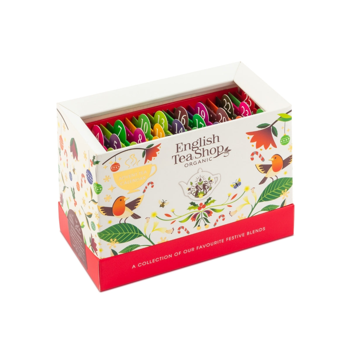 クリスマスまでのカウントダウンを、日替わりの香りで楽しむアドベントカレンダースタイルのティーセット。 白茶・紅茶・緑茶・ルイボス・ハーブなど、世界各地のオーガニック茶葉を使った13種類のブレンドを詰め合わせました。南国フルーツの香りが広がる「ホワイトティー トロピカルフルーツ」、スパイス香る「シナモン、モリンガ&ジンジャー」、ベリーの甘酸っぱさが魅力の「スーパーベリー」など、日ごとに異なる香りと味わいが楽しめます。
