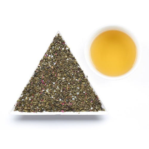 ハイグロウンティーを100%使用した緑茶をベースに、バラの花びらとザクロを贅沢にブレンドしたフレーバーティーです。爽やかな味わいは、和洋菓子にピッタリ。