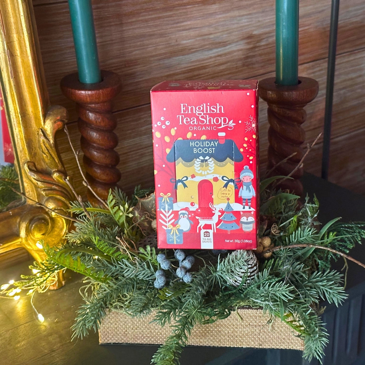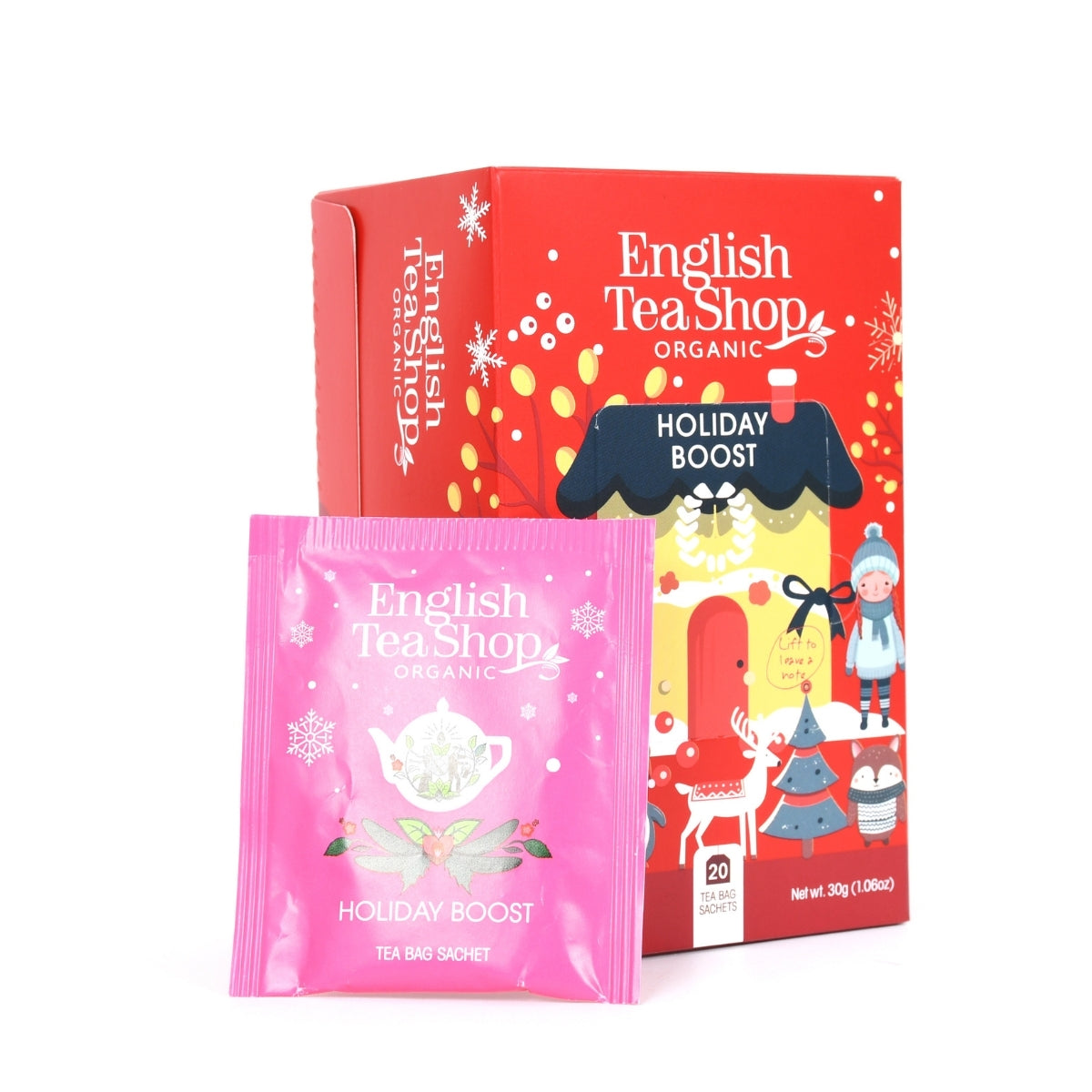 有機ローズヒップとハイビスカスのビタミンC、シナモンやリコリスの温かみ、ペパーミントの爽やかさが調和した冬季限定ブレンドティー。ホリディ・ブーストは、美容と健康を意識した毎日のリラックスタイムに最適です。ティーバッグ20袋入りで手軽に楽しめます。